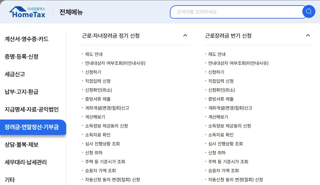 ‘근로·자녀장려금 신청’ 메뉴에서 신청